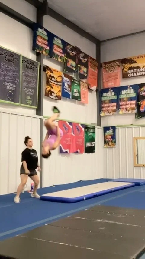 Focusing on working backhandsprings and below. Backwalkovers, front walkovers, backhandsprings, and roundoff handsprings can be worked in this clinic.
